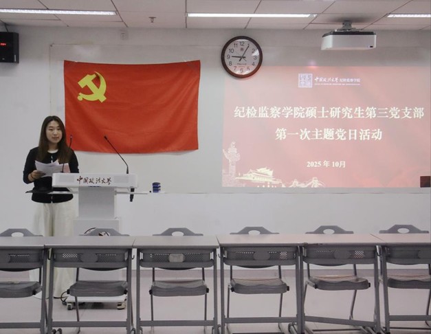 为深入学习贯彻习近平总书记考察法大重要讲话和重要回信精神,勉励新时代纪检监察学子挺膺担当,10月16日,纪检监察学院硕士研究生第三党支部开展“德法兼修铸铁军 知行合一践初心”主题党日活动。纪检监察学院党总支书记何欣作为联系支部的院领导出席本次活动,专职组织员高奇、硕士新生辅导员李叶及清风宣讲团副团长李智伟参加。活动由党支部书记王怡文主持。