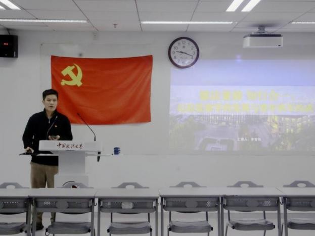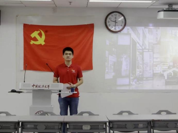 理论学习不能“停于纸”,更要“见于行”。中国政法大学清风宣讲团副团长、博士研究生李智伟为全体党员作《德法兼修·知行合一:纪检监察学的发展与青年铁军的成长》专题分享。他结合自身经历,讲述理论学习与实习实践的联系,希望新生党员能够积极进取,砥砺前行,追寻热爱。